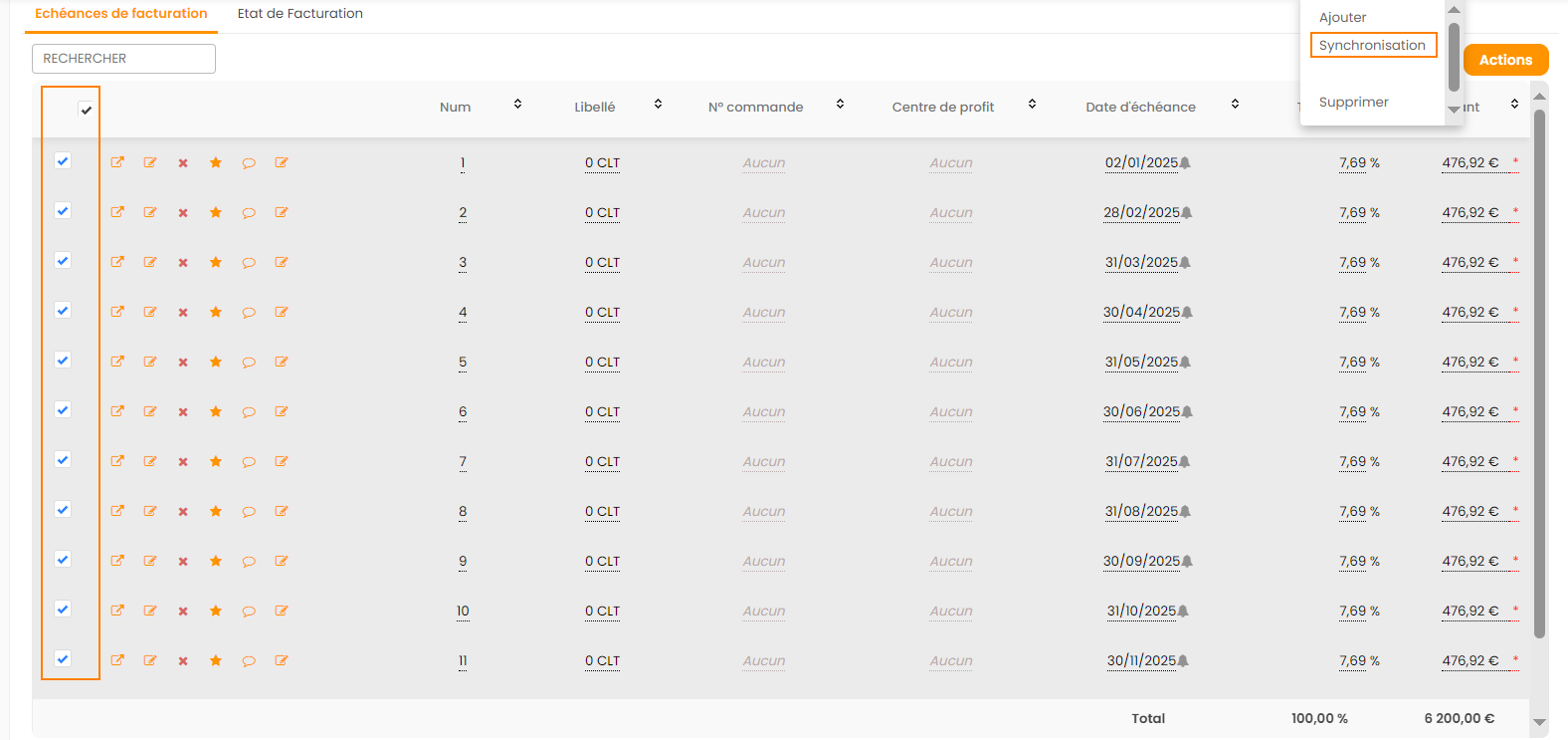 A noter : une échéance déjà facturée, n’est plus synchronisable et supprimable.
