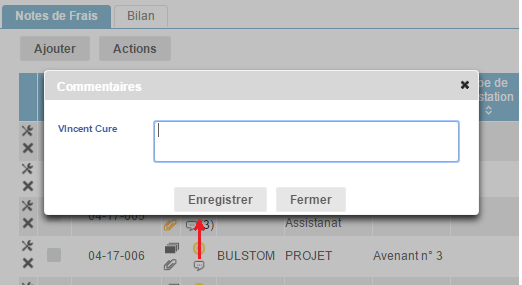 Un popup s'ouvre avec les données de la note de frais, la modification est possible.