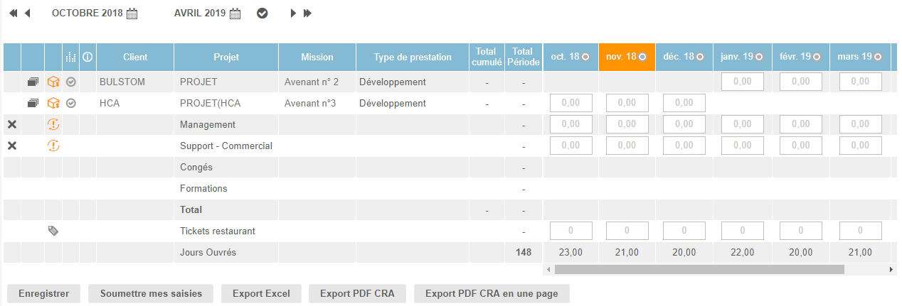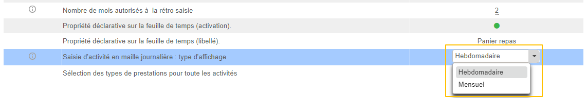 - Mensuelle (saisie de jours ou heures dans des mois)