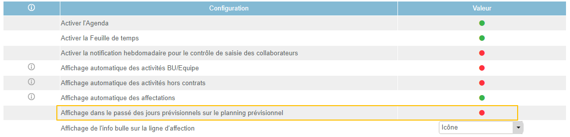 Dans l'onglet Activité prévisionnelle, les temps inscrits dans le passé peuvent être mis à jour lorsque du temps réalisé est saisi. Cela dépend du paramètre suivant :