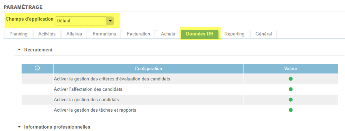 Pour modifier le paramétrage du module Dossiers RH, allez dans le paramétrage > onglet Données RH.
