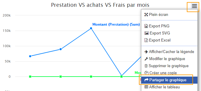 Il est possible de partager les graphiques que l'on a déjà créés à d'autres utilisateurs de Fitnet.