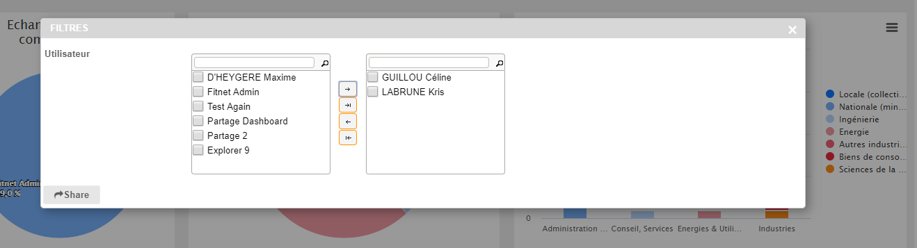En sélectionnant Partager le graphique, une popup s'ouvre. Il est alors possible de sélectionner quels sont les utilisateurs à qui l'on veut partager ce graphique.
