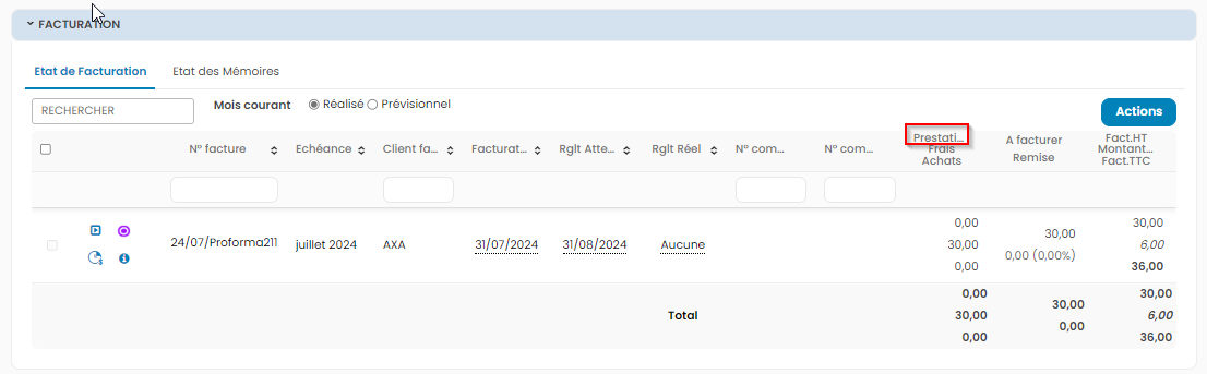 - Ni les frais facturables ni les achats facturables ne sont pas pris en compte dans le plafond de votre régie. Seuls les montants déclarés comme "Prestation" dans les factures sont pris en compte.
