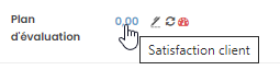 Il est désormais possible de rattacher le plan configuré aux opportunités souhaitées. Pour cela, vous pouvez afficher une opportunité et cliquer sur l’icône à côté de “Évaluation” :