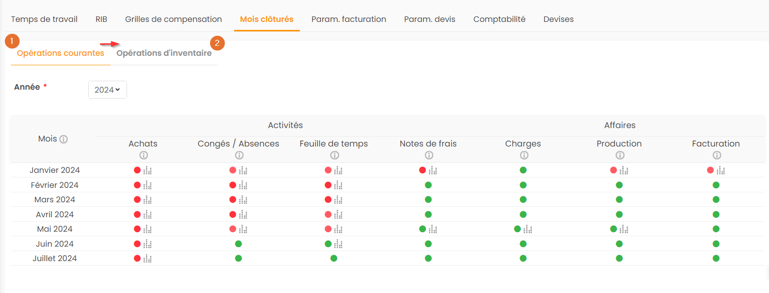 - 1er étape : L’indicateur est par défaut de couleur verte. Cela signifie que le mois est ouvert.