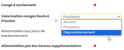 Au préalable des opérations suivants, il faut avoir activé le paramètre "Activer les calculs automatiques et l'intégration comptable du Déprovisionnement des Congés".