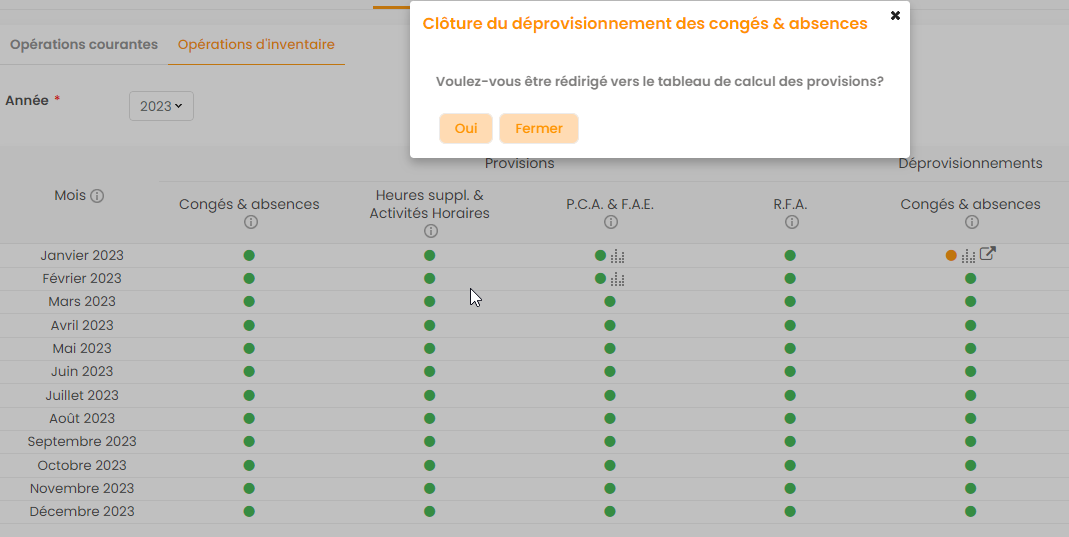 Une fois le clic réalisé, une pop-up vous redirige vers le tableau de calcul des provisions.