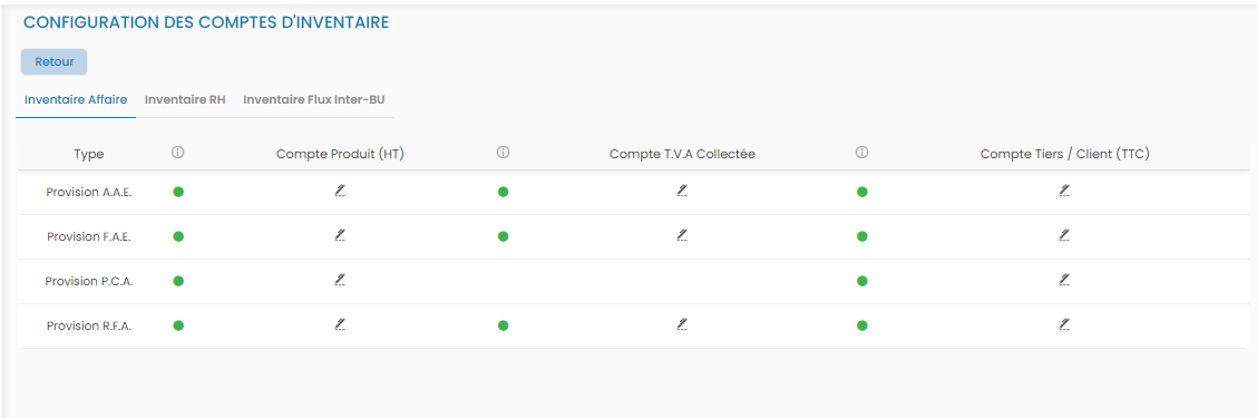Configuration>Facturation>Opérations d'inventaire