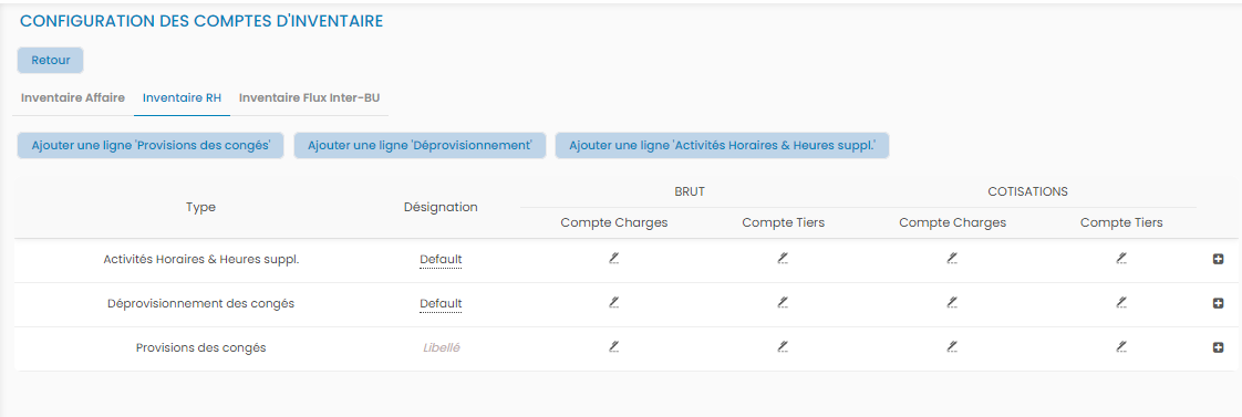 Prov/Déprov congés: Configuration des comptes