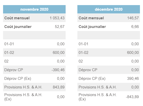 Le montant calculé apparaît automatiquement lorsque votre coût collaborateur est à Bulletin Paye. L'extourne est réalisée sur le mois suivant.
