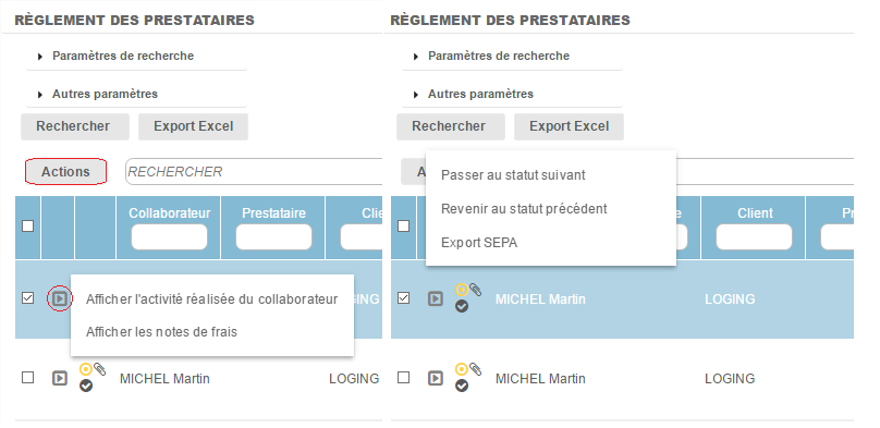 • Modifier le ou les status des prestations sélectionnées en masse