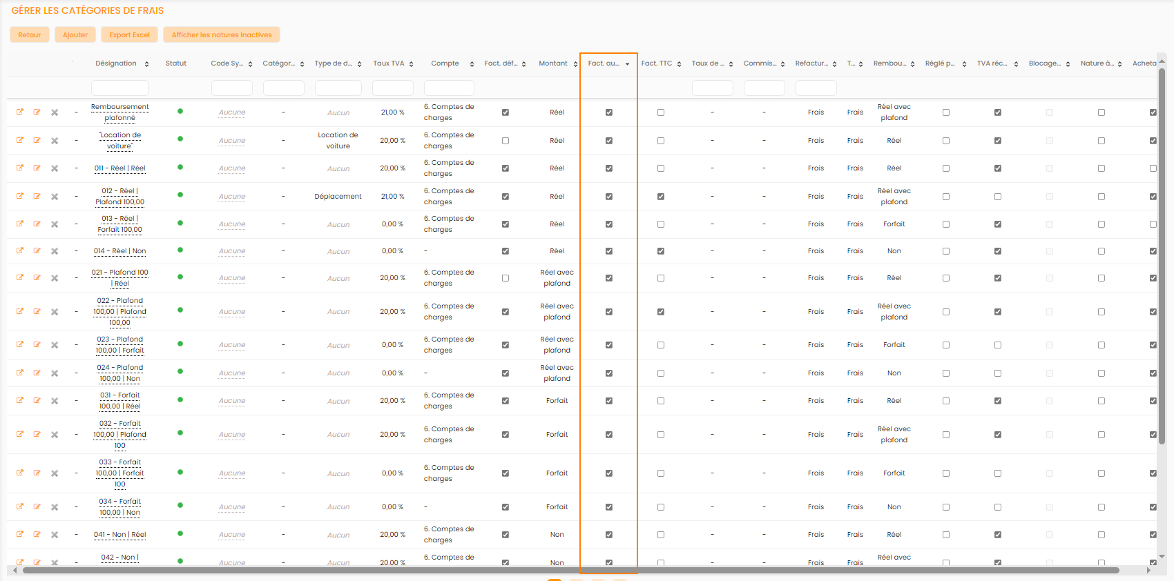 Pour cela, vous pouvez aller la créer ou modifier une catégorie de frais existante depuis Configuration > Affaires > Catégories de notes de frais