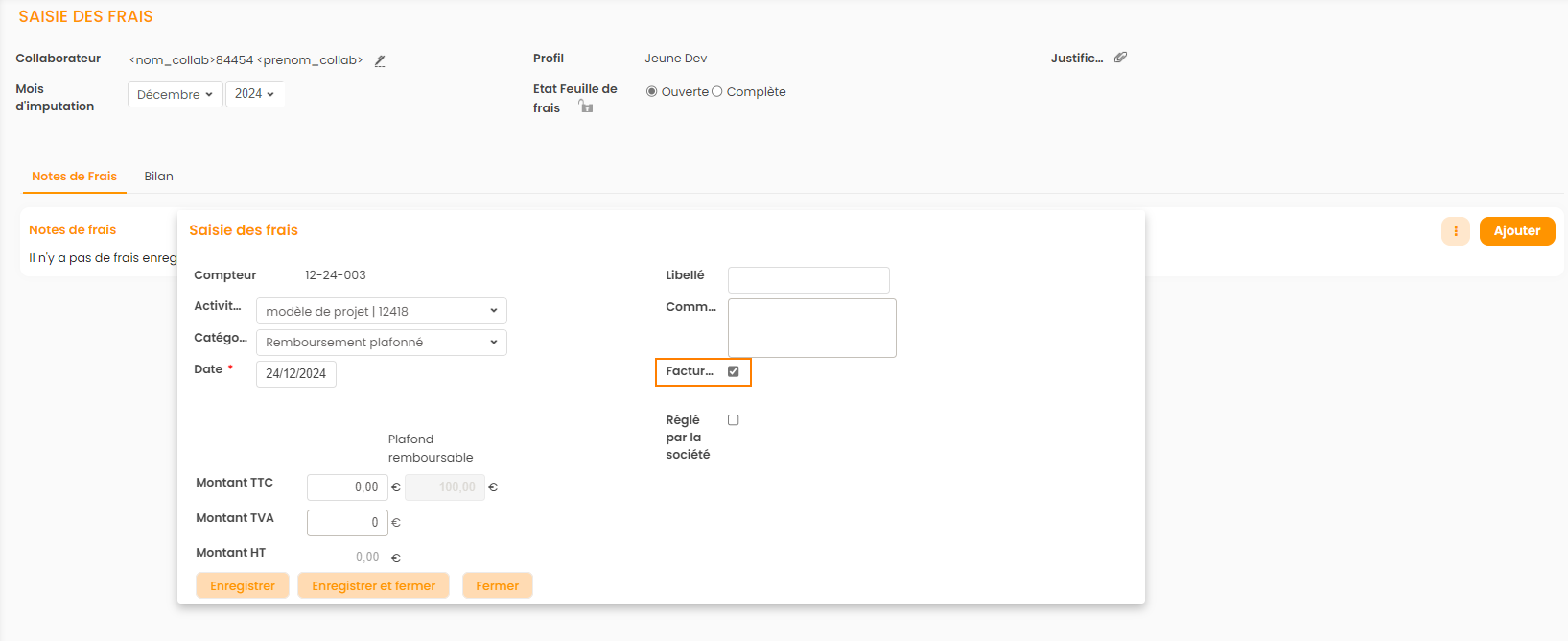 Vous pouvez pré-cocher cette case pour tous vos collaborateurs grâce au paramètre "Facturation par défaut" indiqué précédemment.