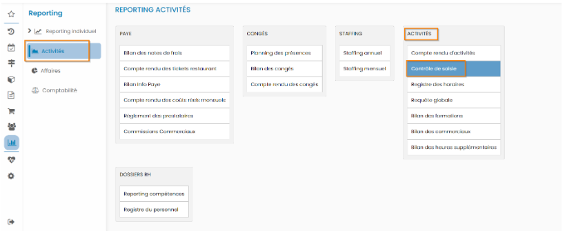 Ce reporting est disponible depuis le module Reporting > Activités > Contrôle de saisie.