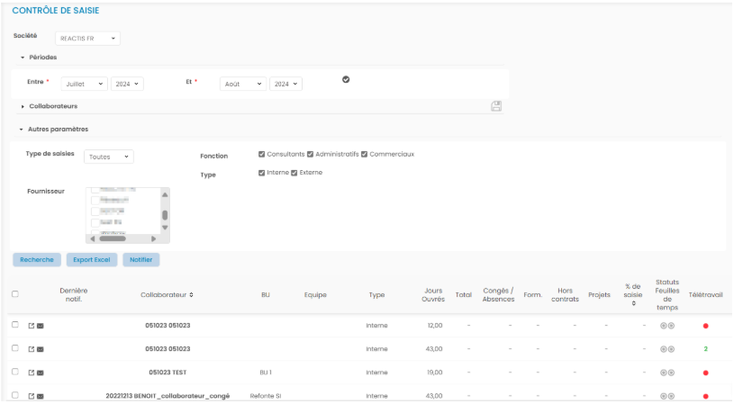 Pour gérer les demandes, un reporting pour contrôler les saisies des collaborateurs est disponible.