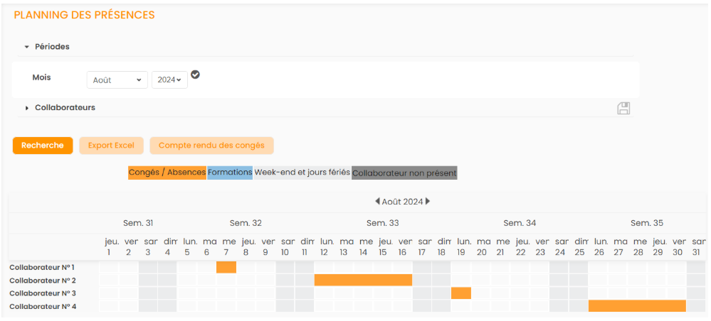Module Reporting > Activités > CONGÉS > Planning des présences
