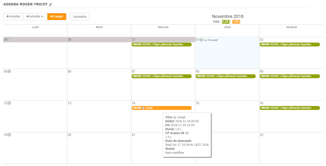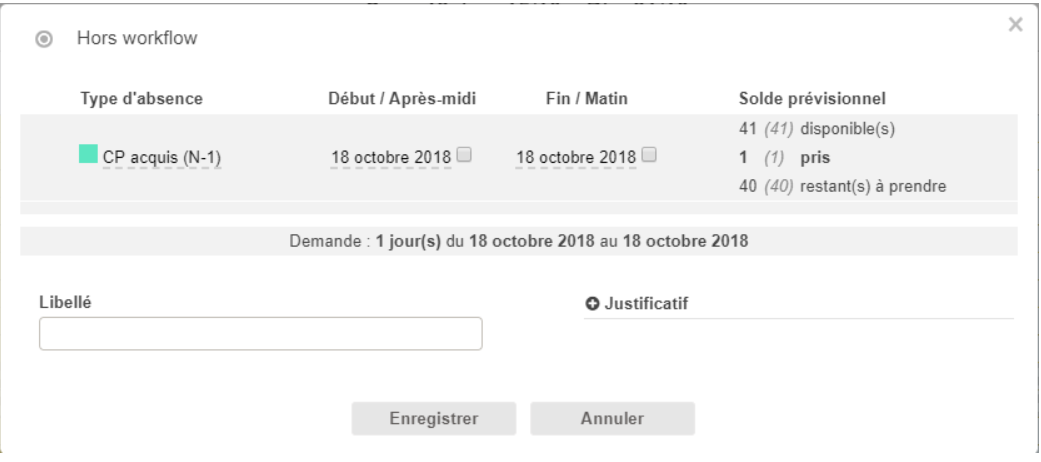 Saisie des congés / absences depuis l'agenda