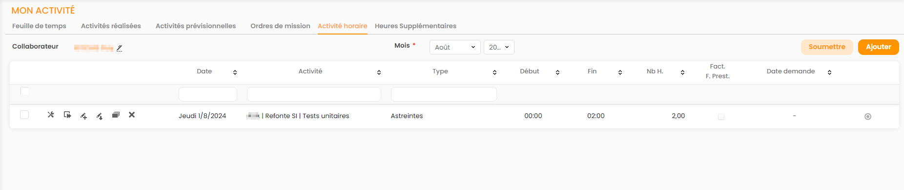 Saisie des Activités horaires