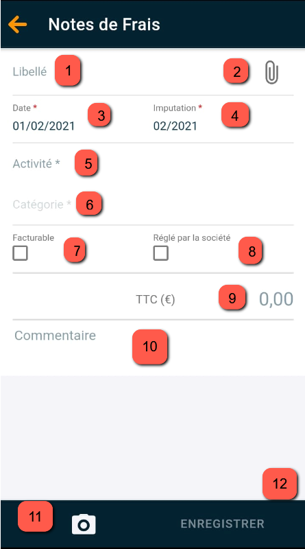 Ci-dessous un mapping complet des différents champs que l’on retrouve à la saisie d’un frais.