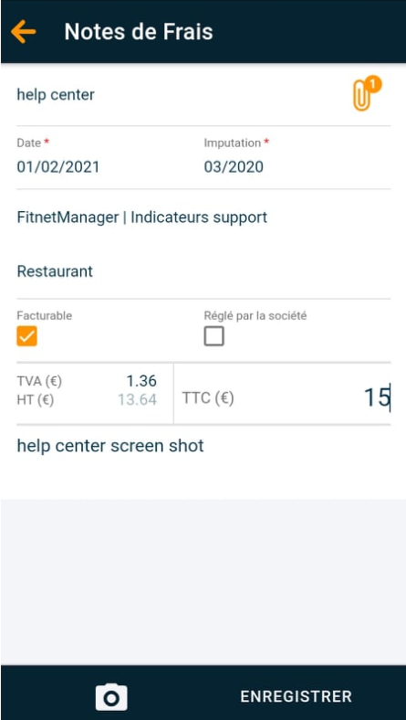 - Prendre une photographie du justificatif de la note de frais (Voir article : Fonctionnement de l’OCR).