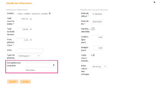 Chaque affectation permet également d’indiquer les compétences qui sont développées durant la mission.