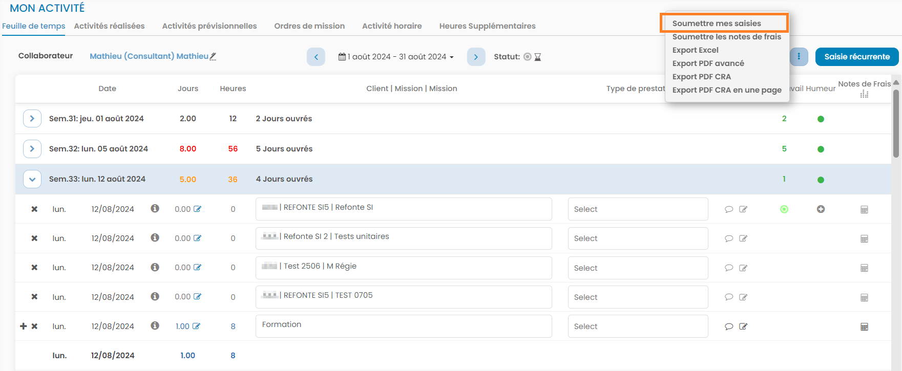 Soumettre sa feuille de temps via l'onglet "Activité réalisée"