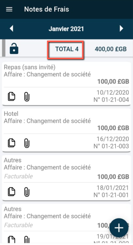 Pour soumettre la feuille de frais, veuillez maintenir la mention “TOTAL” sélectionnée.