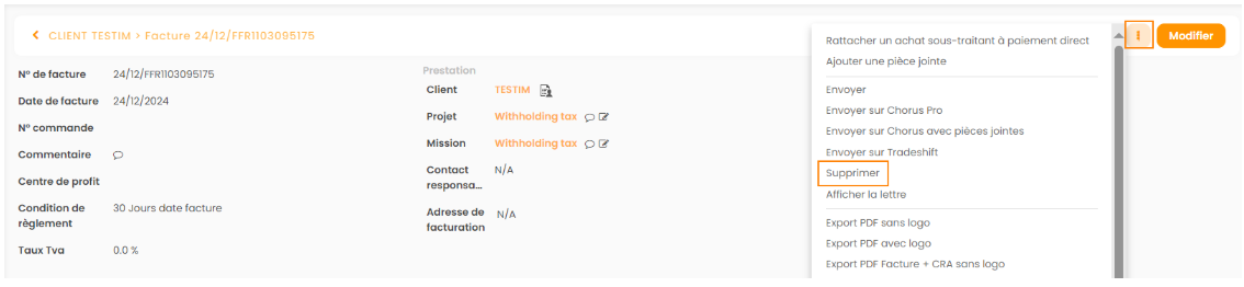, lorsque vous êtes sur l'écran de cette facture, mais uniquement lors qu’elle est en statut enregistrée