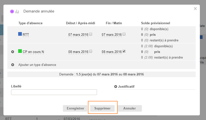 Supprimer une demande de congés déjà validée
