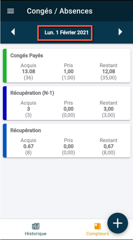 Visualisation des compteurs La page : Compteurs affiche l’état de vos compteurs. Déplacer la date vous permet de visualiser la valeur de vos compteurs dans le futur ou dans le passé.